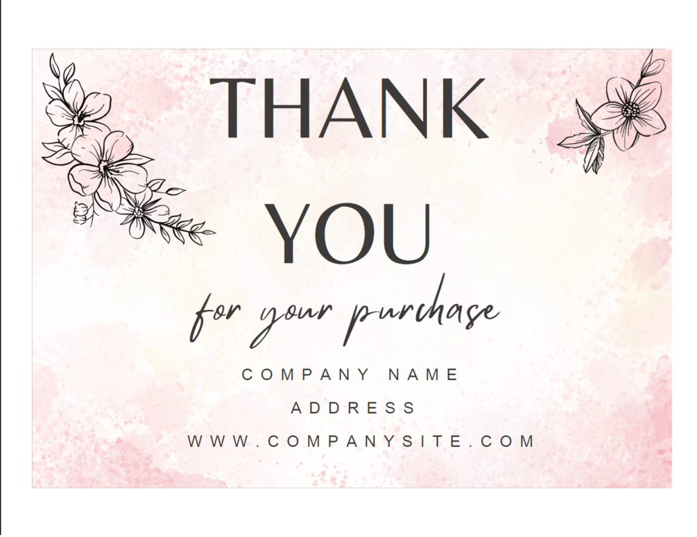 Customizable Thank you for Purchase note 5.5 * 4.25 in Canva Template